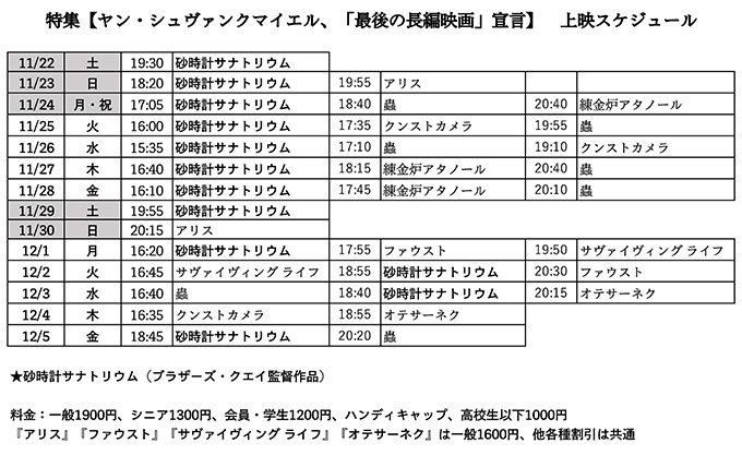 【ヤン・シュヴァンクマイエル、「最後の長編劇映画」宣言】公開記念 |