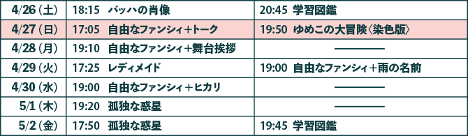 ヒカリ※4/30(水)のみ『自由なファンシィ』と併映 |