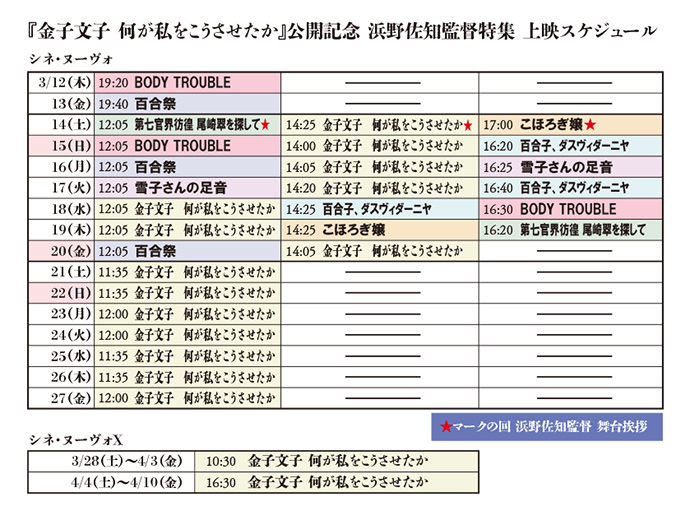 〈舞台挨拶情報〉3/14(土)14;25の回上映後 ゲスト:浜野佐知監督 〈上映スケジュール〉『金子文子 何が私をこうさせたか』公開記念 浜野佐知監督特集ページはこちら |