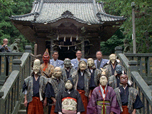 面掛行列は鎌倉の御霊神社で行われる祭礼。奈良時代から伝わる伎楽の面や田楽の面をつけた10人衆が御霊神社から極楽寺の坂までを練り歩き、豊作・豊漁を祈願する。野田は1972年に神奈川ニュース映画協会の依頼で祭礼を撮影し、後にフィルムをもらい受けて私家版として本作を完成させた。前半は面掛行列をダイナミックに映し、後半は展示のように面を紹介するという、動と静を対比させた構成が実験的な記録映画。