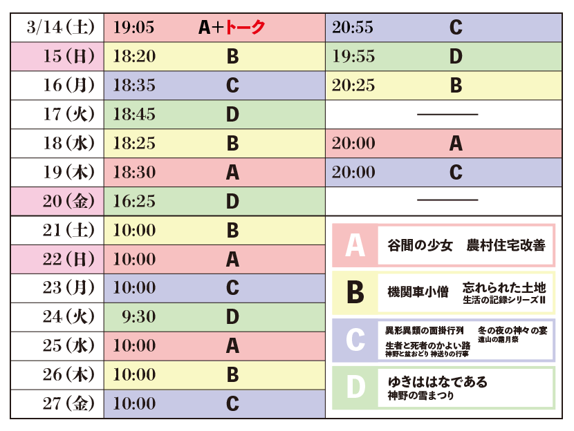 3/14(土)19:05 【Aプログラム】(『谷間の少女』『農村住宅改善』)上映後