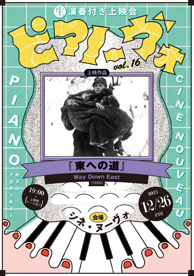 いまから遡ること130年前。映画が誕生した頃の映画には音がついていませんでしたが、スクリーン近くで演奏される生の音楽とともに楽しまれていました。そんな当時のライブ感溢れる映画鑑賞を念願のピアノが入ったシネ・ヌーヴォでご堪能いただく企画第16弾!サイレント映画×鳥飼りょうの 「ピアノーヴォ」お楽しみください。
