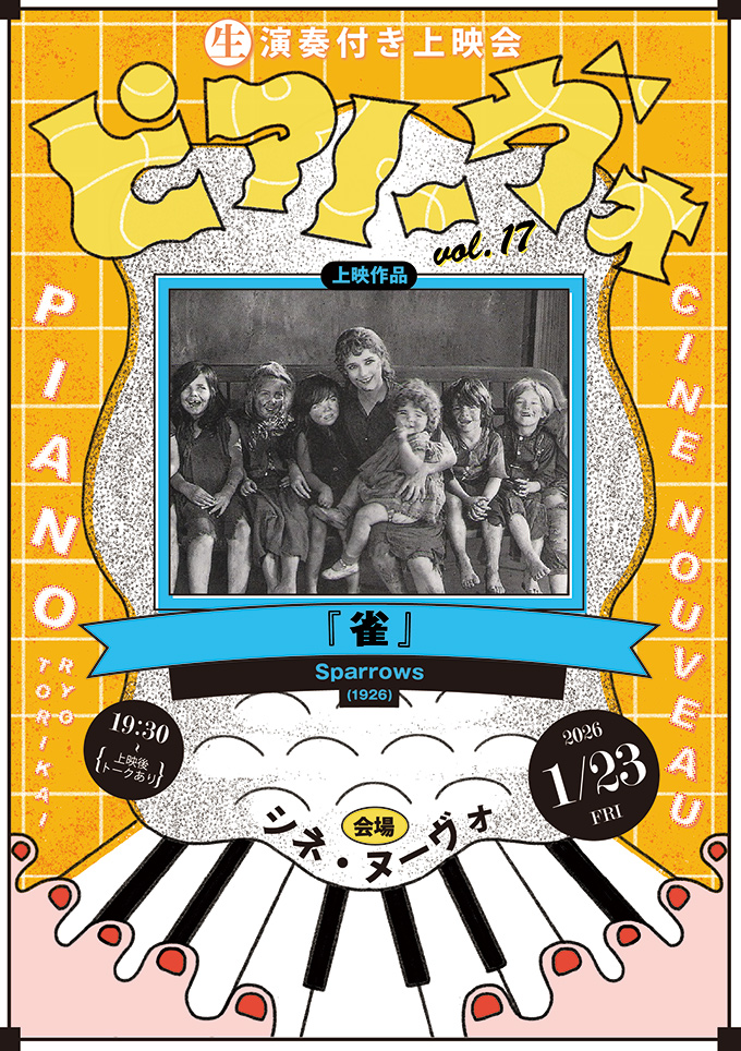 いまから遡ること130年前。映画が誕生した頃の映画には音がついていませんでしたが、スクリーン近くで演奏される生の音楽とともに楽しまれていました。そんな当時のライブ感溢れる映画鑑賞を念願のピアノが入ったシネ・ヌーヴォでご堪能いただく企画第17弾!サイレント映画×鳥飼りょうの 「ピアノーヴォ」お楽しみください。