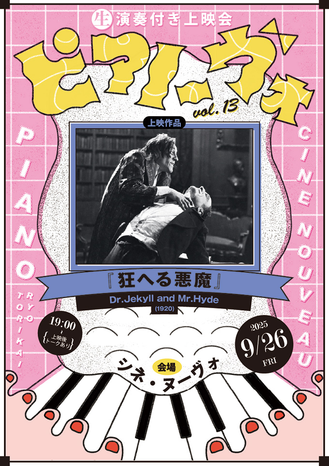 いまから遡ること130年前。映画が誕生した頃の映画には音がついていませんでしたが、スクリーン近くで演奏される生の音楽とともに楽しまれていました。そんな当時のライブ感溢れる映画鑑賞を念願のピアノが入ったシネ・ヌーヴォでご堪能いただく企画第13弾!サイレント映画×鳥飼りょうの 「ピアノーヴォ」お楽しみください。